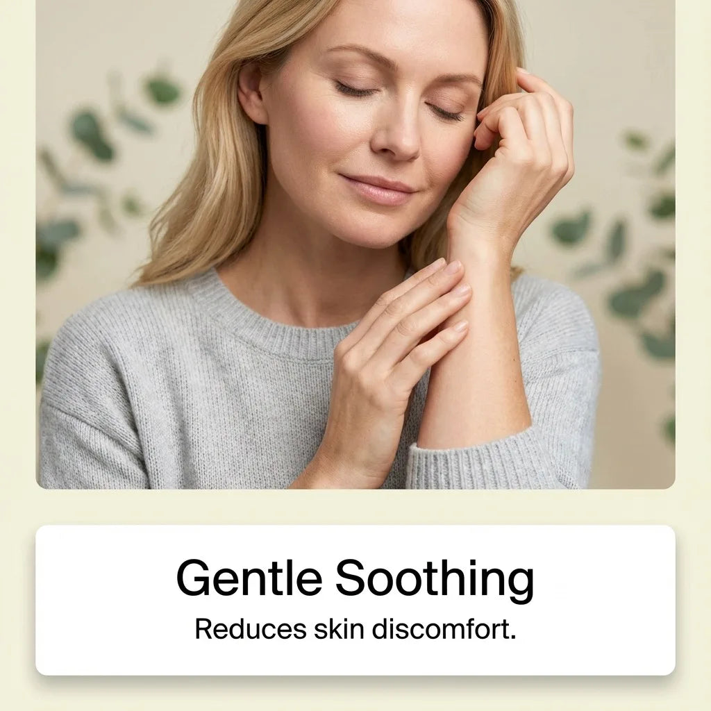 A plant oil that closely mimics your skin's natural oils, making it absorb deeply without feeling greasy. Jojoba supports balanced hydration and improves skin suppleness. This helps your skin handle the constant pressure from internal swelling more comfortably.